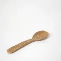 A 13 CM spoon made from Rice Bran and Rice Husk. Firm enough to scoop rice, chutneys, and semi-solid foods without bending. No plastic, fully compostable after a single use.